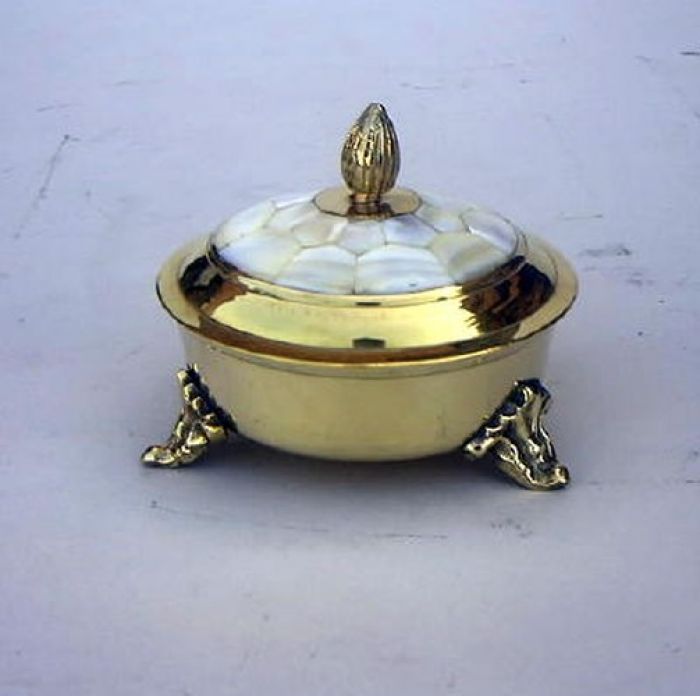 BR2330 - Solid Brass Powder Pot Mother of Pearl.