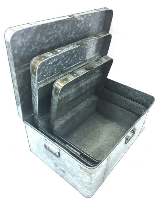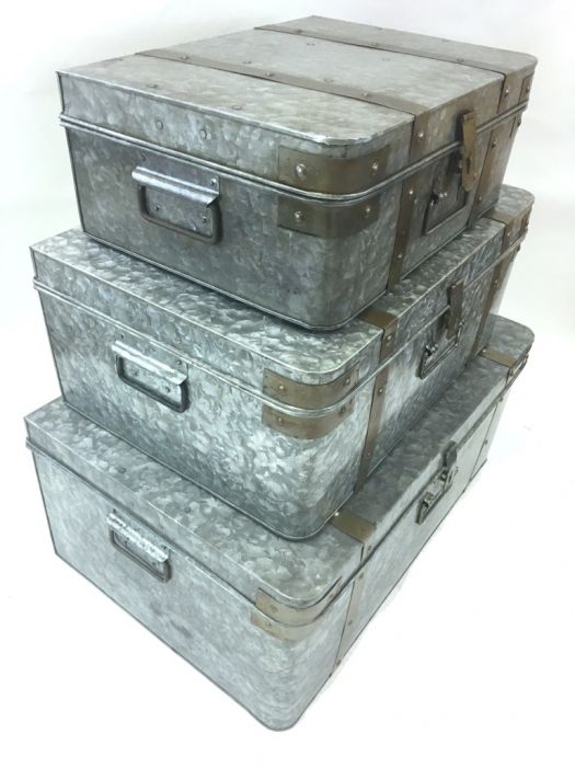 IR23233 - Galvanized Trunk with Rivets and Metal Strips, Set of 3